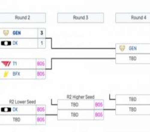 由于常规赛战绩中DK的3胜2负战绩不如另一组对决的T1和BFX,因此DK跌入败者组第二轮,后续交手DNS与DRX胜者,而T1将在败者组第三轮等到第两轮的胜者。
