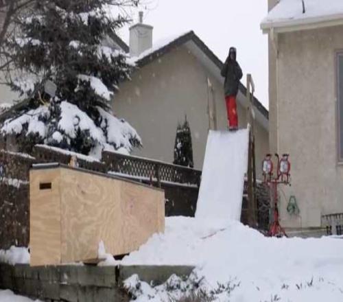麦克莫里斯父亲在自家后院搭了个简易装置,满足儿子们想要练习滑雪的愿望。