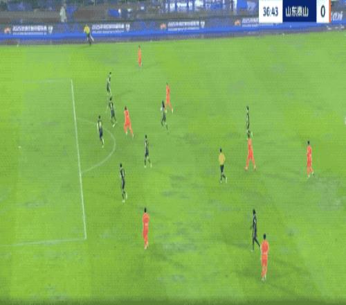 第36分钟,黄政宇禁区外突然起脚远射,皮球直奔死角而去,赵博腾空而起,再次贡献精彩扑救。