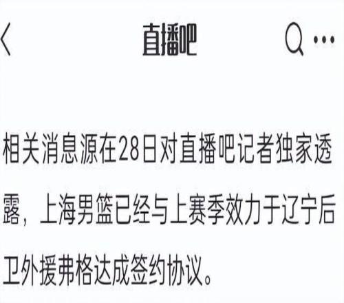 其实上海男篮过去很长一段时间都是在挑选大外援,毕竟内线相对薄弱一些,但没有太好的人选,就在这个时候,弗格也主动降薪来寻找工作。