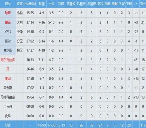 黄蜂全队数据如下: