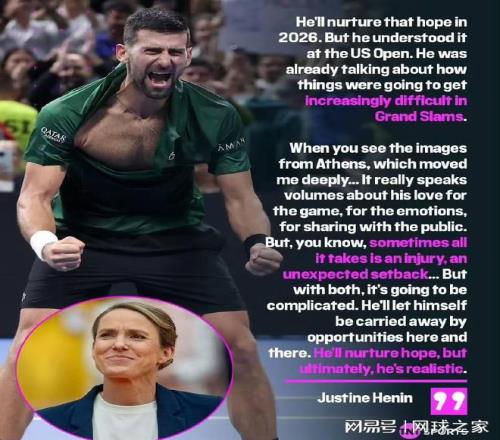 对此,前网球选手、七届大满贯冠军得主海宁对德约科维奇的处境有着敏锐的观察:“他会在2026赛季继续保持这种希望,但他在今年美网已经意识到这点,当时他开始谈论赢得大满贯会越来越困难。”