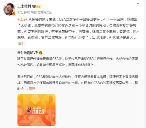 截止目前,CBA和咪咕尚未达成协议,但双方保持着基本沟通,即便赶不上直播揭幕战,后续双方仍保留着展开多轮谈判的空间。在现有的CBA非独家版权售卖体系中,暂时给咪咕预留的依旧是互联网主要播放平台的规划。