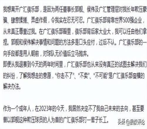 周琦在个人社媒做出更多的爆料,与新疆广汇俱乐部已经达到无法合作的地步,尤其是一些高层的矛盾公开化。