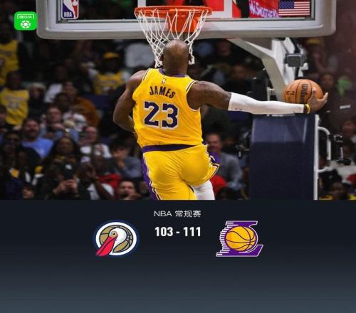 第四节鹈鹕特雷-墨菲拿下8分,湖人詹姆斯拿下10分,最终鹈鹕103-111不敌湖人