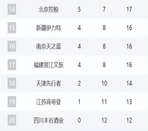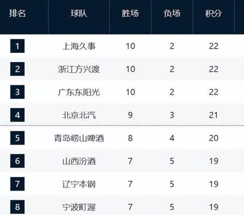 北京和青岛排在第四和第五。北京最近5场输了3场,他们需要尽快总结了。青岛则是两连败,这轮惨败给了上海。