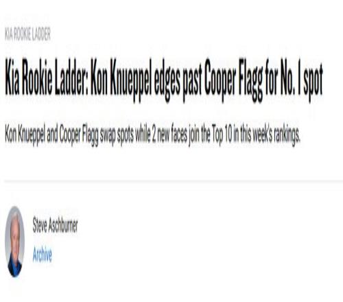 NBA官网新秀榜更新:克努佩尔超越弗拉格登顶开拓者乐福升至第8