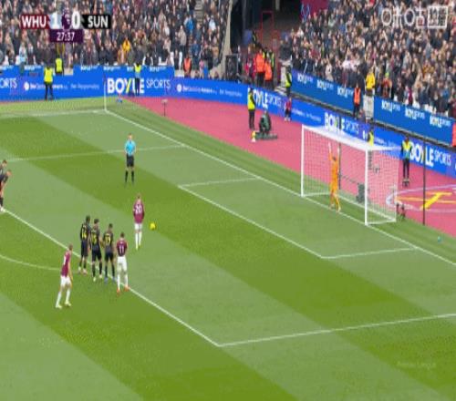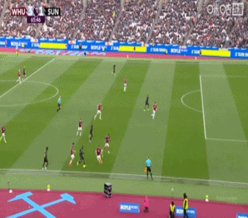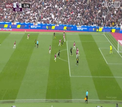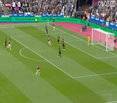 第43分钟,费尔南德斯外围远射破门,西汉姆联3-0桑德兰