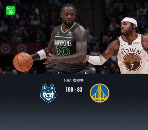 北京时间1月27日NBA 常规赛,勇士背靠背客场再战森林狼。本场勇士库里、格林、梅尔顿、霍福德均缺阵,森林狼爱德华兹缺阵。首节双方持续防守拉锯紧咬比分,次节森林狼找到进攻状态兰德尔领衔拉大分差,半场森林狼53-38勇士,下半场勇士进攻依旧低迷,森林狼持续拉大分差,末节最大领先32分,最终森林狼108-83勇士就此结束5连败。