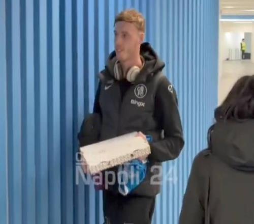 据国外博主发布的视频显示,在战胜那不勒斯赛后,切尔西球员收到了披萨作为“奖励”。