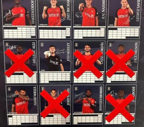 卢顿推出2026年球队日历,但上面印的12个球员5个都已不在阵中