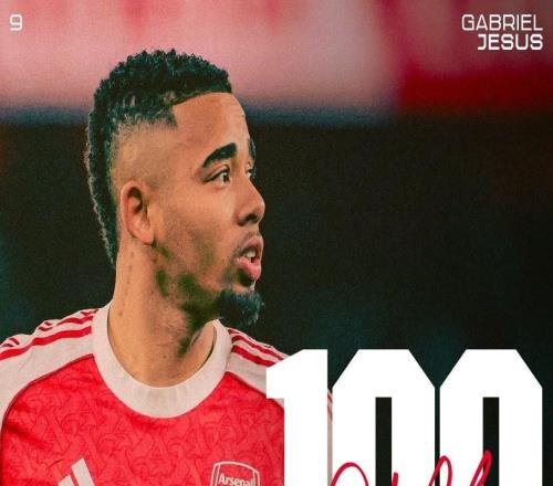 英格兰联赛杯1/4决赛的最后一场较量已经开始,阿森纳正在主场迎战水晶宫。阿森纳前锋热苏斯在本场比赛当中首发出场,这也让他迎来了属于自己的里程碑时刻:这是他在阿森纳生涯当