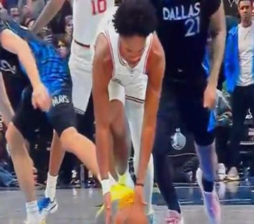 北京时间今日,在NBA常规赛中,达拉斯独行侠队在主场迎战休斯顿火箭队。在比赛刚刚开始的时候,独行侠队由弗拉格控球,结果造到对位防守的阿门-汤普森面断,当阿门拿球准备快攻时,弗拉