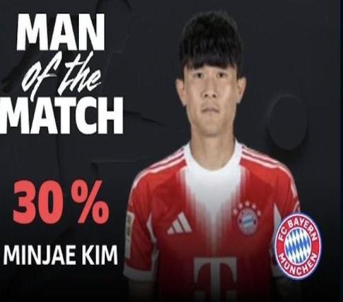 德甲第17轮,拜仁慕尼黑客场3-1逆转击败科隆,此役打入一球的拜仁后卫金玟哉当选德甲官方全场最佳球员。此役客场对阵科隆,首发出战的金玟哉在下半场头球破门,帮助拜仁慕尼黑反超