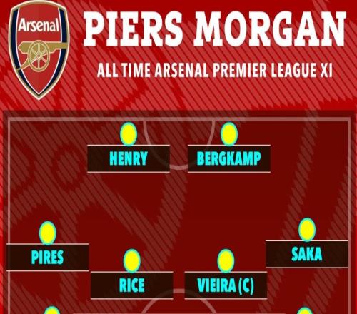 根据《太阳报》的最新报道,皮尔斯-摩根评选的阿森纳英超历史最佳阵容引发了不小争议。作为知名的阿森纳死忠,摩根认为,除了一众俱乐部传奇外,现役阵容中有四名球员足以入选这份