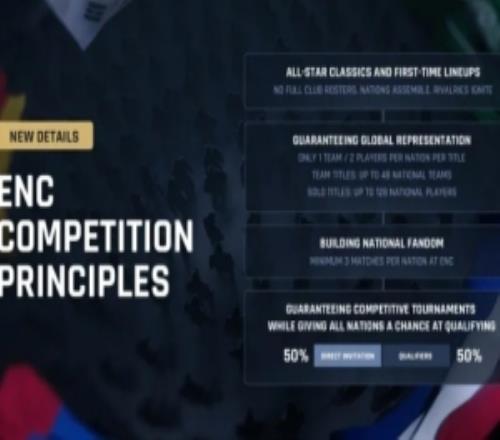 体育资讯1月8日称 沙特阿拉伯电子竞技世界杯基金会(EWCF)公布了全新赛事电子竞技国家杯(Esports Nations Cup,ENC)的相关细节。 首届ENC将在2026年